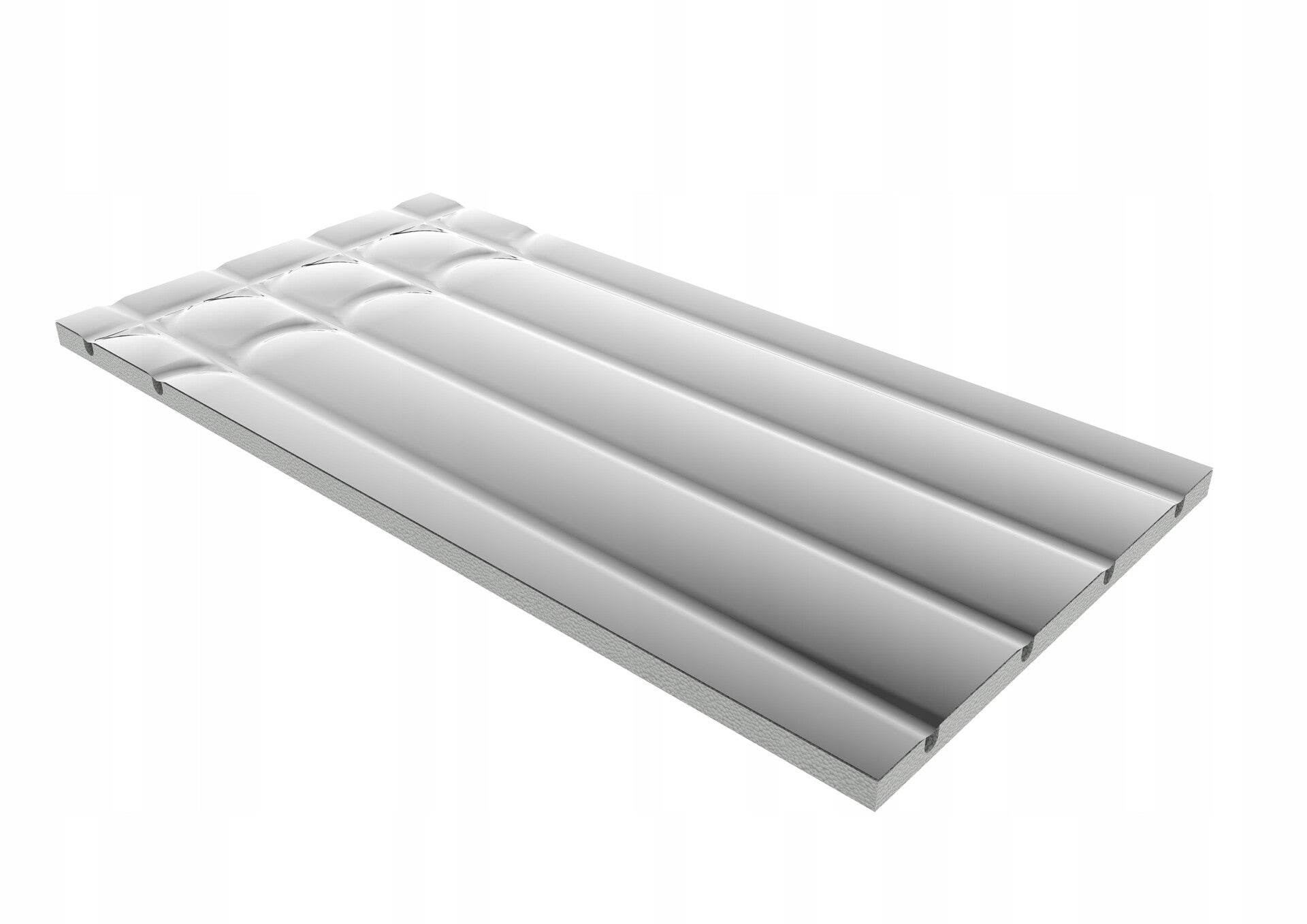 ander Alu Standard EPS 300 boards are used as a supporting element for underfloor heating pipes in drywall construction. The physical properties of EPS 300 polystyrene ensure that the product provides optimal thermal and acoustic insulation for the system . The aluminum foil veneer acts as a heat sink, absorbing heat from the pipe's sidewall and distributing it evenly across the board's surface. The straight element is used for running pipes straight and for meandering them along the building's walls.